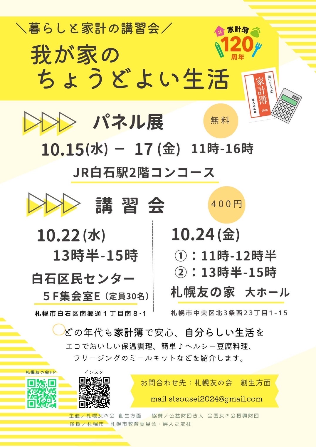 | 10/24(金) | (終了しました) | 創生方面 | 札幌友の家 | |