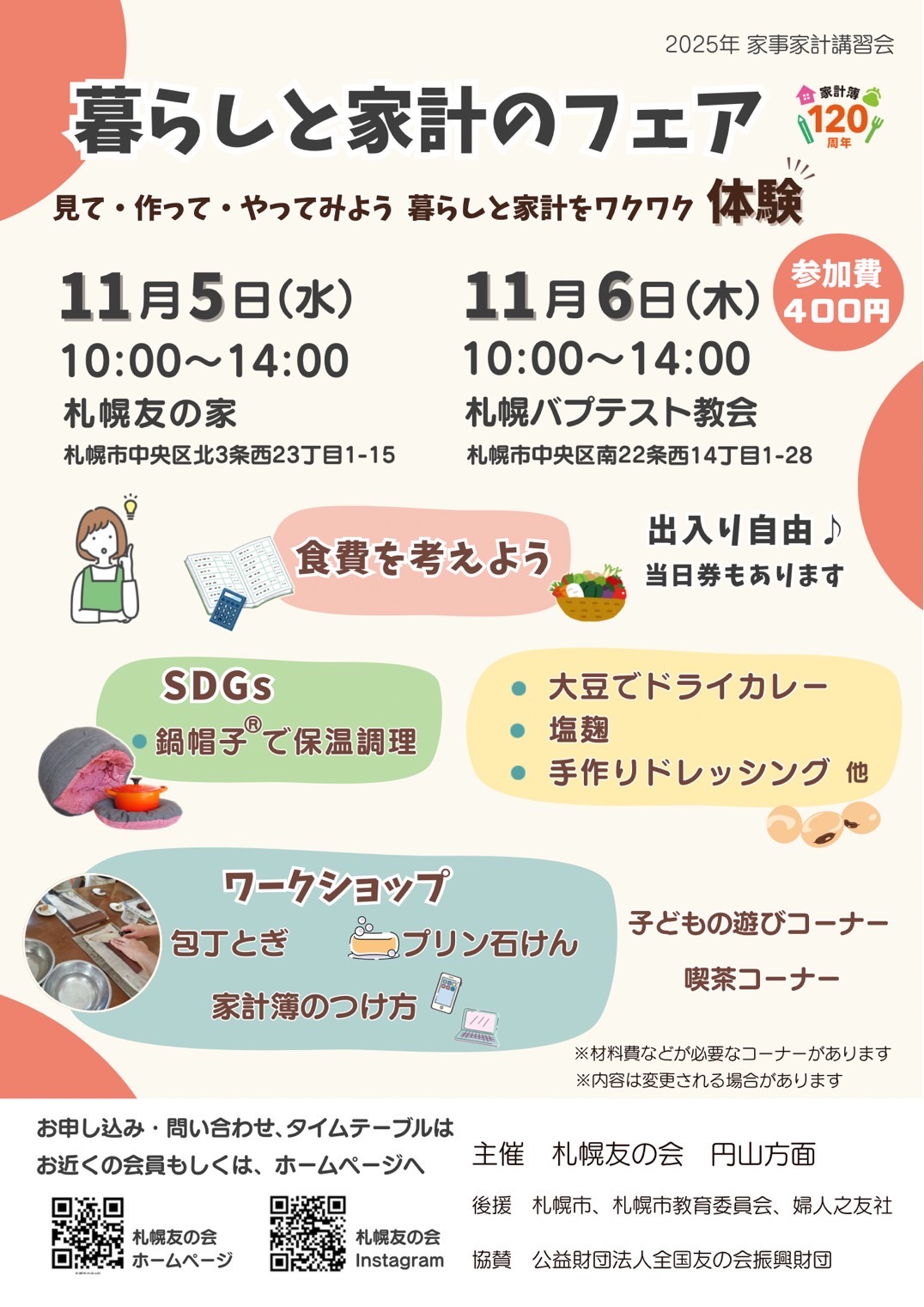 | 11/6(木) | (終了しました) | 円山方面 | 札幌バプテスト教会 | |