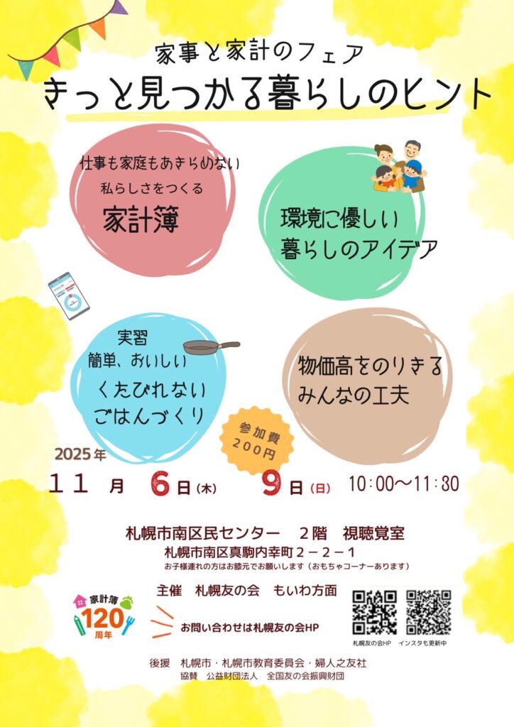 | 11/8(土) | 10:00 | 11:30 | 西方面 | 札幌友の家 |